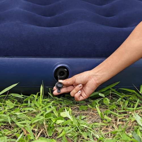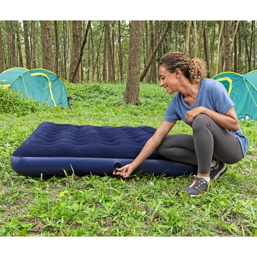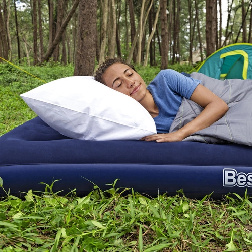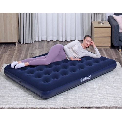 Diese doppelte Luftmatratze von BESTWAY kombiniert Langlebigkeit und Komfort. Die beflockte, samtige Oberfläche fühlt sich angenehm an, verhindert das Verrutschen der Bettwäsche und erhöht den Schlafkomfort. Die stabile Coil‑Beam-Konstruktion verteilt das Gewicht gleichmäßig und bietet zuverlässige Körperunterstützung zu Hause und in der Natur.