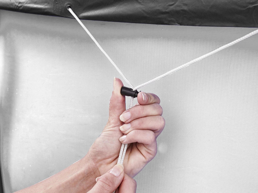Starke Fixierschnüre gewährleisten, dass die Plane bei jedem Gebrauch sicher befestigt ist.
