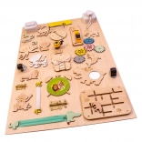 Kinder sind von Natur aus neugierig auf die Welt um sie herum. Dieses Sensorboard ermöglicht es, verschiedene Objekte und mechanische Elemente in einer sicheren Umgebung zu erkunden. Die Holzkonstruktion sorgt für Langlebigkeit und eine bessere Widerstandsfähigkeit als Spielzeuge aus Plastik.