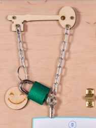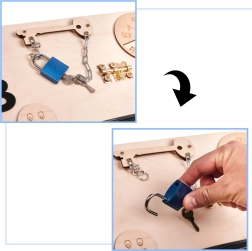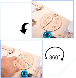 Dank verschiedenster Elemente wie Schalter, Reißverschlüsse und andere bietet die Holzmanipulationstafel Kindern eine sichere Umgebung zum Entdecken und Lernen. Kleine Kinder können Alltagsgegenstände wie Steckdosen und Schalter sicher handhaben, während sie ihre manuellen Fähigkeiten entwickeln.