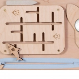 Holzmanipulationstafel bietet Kindern Spaß und Entwicklung durch eine Vielzahl von interaktiven Elementen. Das Spielen auf diesem Brett fördert die Feinmotorik, die Hand-Auge-Koordination und lehrt das kausale Denken. Das Produkt garantiert Sicherheit durch glatt geschliffenes Holz.