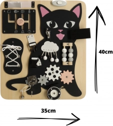 Die Lulilo-Tafel in Katzenform ist ein beliebtes pädagogisches Spielzeug für Kinder, das zum Drehen, Ziehen, Binden und Schieben auffordert. Es hilft ihnen, die Feinmotorik, Bewegungssicherheit und Handkraft zu entwickeln. Lustige Rätsel und Aufgaben stimulieren die kognitiven Fähigkeiten von Kleinkindern und bieten ihnen Zufriedenheit mit ihren Erfolgen.