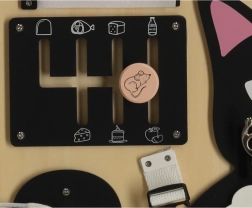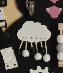Dank des attraktiven Designs und der vielfältigen Geräusche hält diese Tafel sogar die Aufmerksamkeit der zerstreutesten Kinder aufrecht. Sie lernen damit, Schnürsenkel zu binden, Schnallen zu schließen und Schlüssel zu verwenden. Robuste Materialien garantieren eine lange Lebensdauer auch bei häufigem Gebrauch.