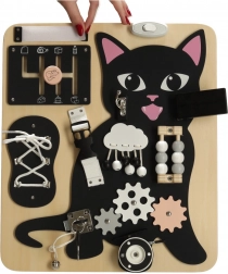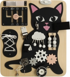 Die Kombination einer schwarzen Katze mit hellen Holzelementen zieht die Aufmerksamkeit auf sich und hält das Kind stundenlang beschäftigt.