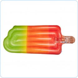Die stylische aufblasbare Luftmatratze in Form eines Eis am Stiel überzeugt auf den ersten Blick mit ihren leuchtenden Farben. Sie ist ideal zum Relaxen auf der Pooloberfläche und bietet dank der großzügigen Maße 185 × 89 cm auch größeren Personen bequemes Liegen. Nach dem Ablassen der Luft lässt sie sich leicht transportieren und passt in die Tasche für jeden Urlaub.