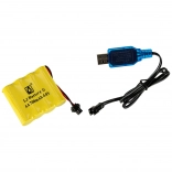 Im Lieferumfang ist ein Akku mit USB‑Ladegerät für komfortable und sparsame Nutzung enthalten. Die Fernsteuerung benötigt 2× AA Batterien (nicht enthalten).