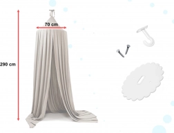 Die Montage ist einfach – im Set finden Sie das benötigte Zubehör für die Befestigung an der Decke. Die großzügige Stoffbreite und der Baldachindurchmesser schaffen einen angenehmen, geschützten Bereich, in dem sich Kinder sicher fühlen.