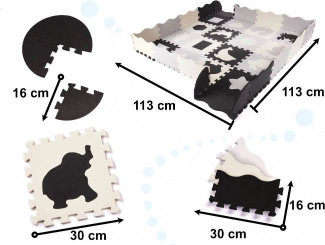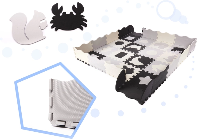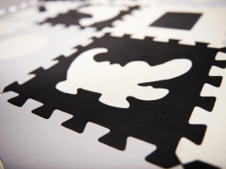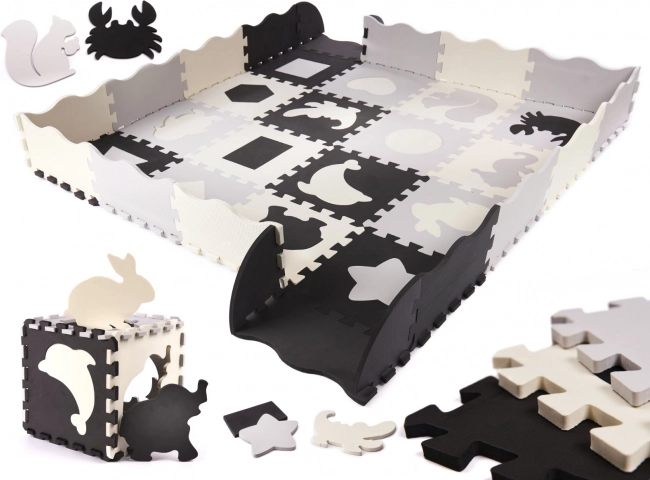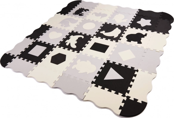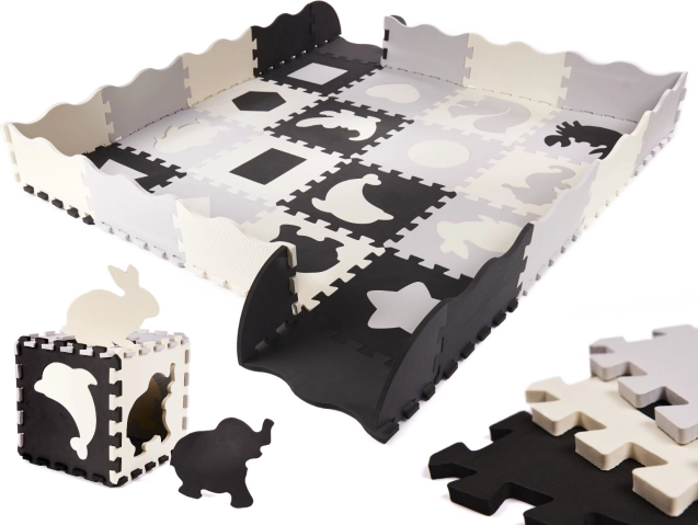 Die Kontrast Puzzle Schaumstoffmatte für Kinder bietet grenzenlose Spielmöglichkeiten und wächst mit deinem Kind mit. Mit herausnehmbaren Elementen in kontrastreichen Farben wird die Matte zu einem spannenden Lernspielzeug für Kleinkinder.