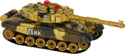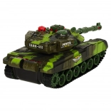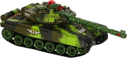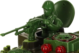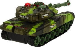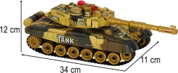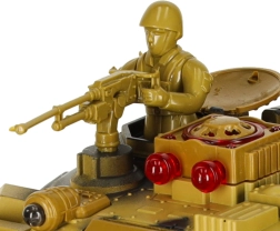 Das Kettenfahrwerk mit weichen Gummiketten sorgt für gute Traktion, der drehbare Turm rotiert bis zu 300° und die Infrarot-Kanone ermöglicht sicheres Schießen auf kurze Distanz. Effektvolle LED-Beleuchtung sowie satte Motor-, Kanonen- und MG-Sounds verstärken die Atmosphäre eines echten Schlachtfelds. Hochwertiger Kunststoff und sorgfältige Verarbeitung halten monatelangem Spiel stand.