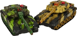 Set aus zwei RC-Panzern T90 in Wald- und Wüsten-Tarnung sorgt für realistische Gefechte für zwei Spieler. Infrarotschüsse, vibrierender Rückstoß, Treffer-LEDs und reiche Soundeffekte garantieren spannende Action. Die Steuerung auf 2,4 GHz ermöglicht sanftes Fahren, Turmdrehung und Schießen – ideal für stundenlangen Spaß.