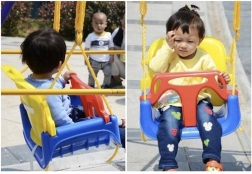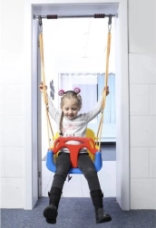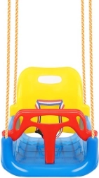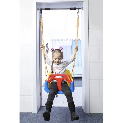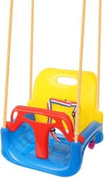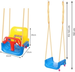 Diese farbenfrohe 3-in-1-Schaukel ist eine hervorragende Wahl für Kleinkinder und größere Kinder. In der Konfiguration mit T-Bügel und hoher Rückenlehne schaukelt sie die Kleinsten sicher; später lassen sich vorderes und hinteres Teil entfernen und sie wird zu einem klassischen Sitz. Verstellbare Sicherheitsgurte halten das Kind fest, während die rutschfeste Struktur des Sitzes auch bei ausgelassenem Spiel ein Abrutschen verhindert.