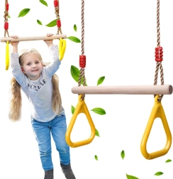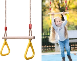 Das hölzerne Gymnastikreck mit Griffen ist eine großartige Wahl für aktive Kinder. Es bietet Spaß und fördert die Motorik, stärkt Armmuskeln und Koordination und lässt sich dank der verstellbaren Seile leicht an unterschiedliche Höhen anpassen. Geeignet für Garten, Terrasse und Innenräume, benötigt nur wenig Platz und hat eine Tragfähigkeit bis 100 kg.