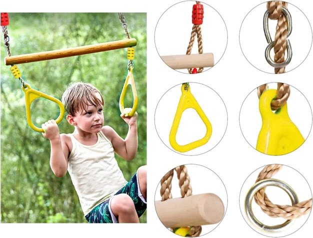 - Sichere Konstruktion – stabiler Holzstab, robuste Seile, ergonomische Griffe.