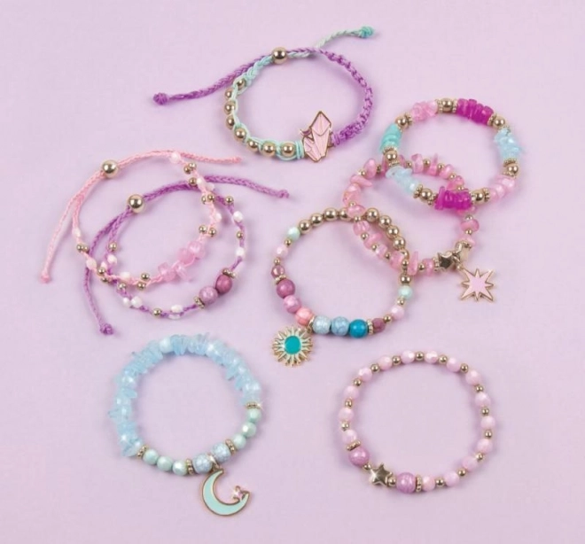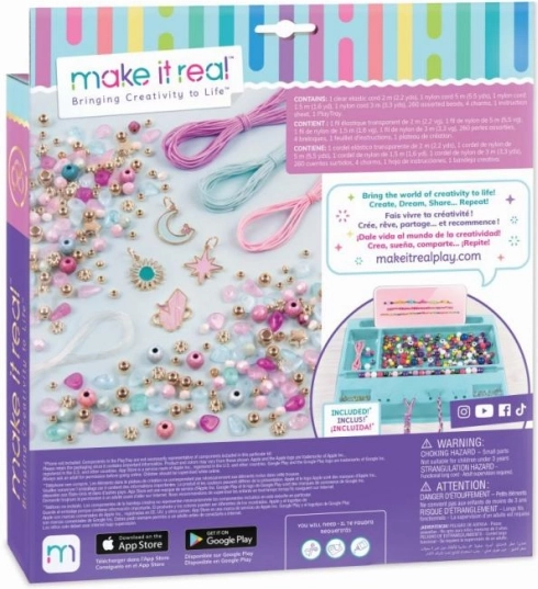 Kreieren Sie zauberhafte Armbänder, inspiriert vom Himmel und den Sternen. Das Make It Real Celestial Stones Set enthält eine große Auswahl an Perlen, Kügelchen und Anhängern, mit denen Kinder ganz leicht Armbänder nach ihrer Fantasie gestalten. Ideal zum gemeinsamen Basteln mit Freunden oder als kreatives Geschenk.