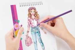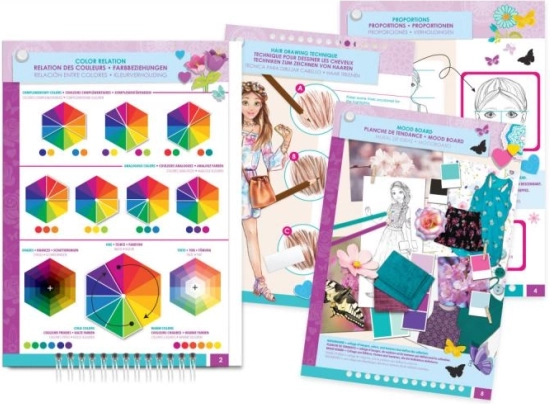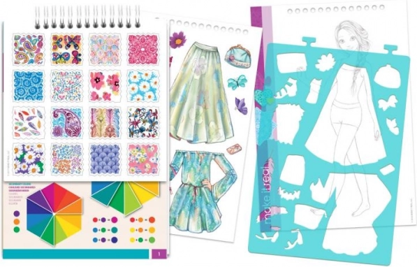 Das Design-Portfolio mit Blumenmotiven bietet Kindern die Möglichkeit, ihre Kreativität mit mehr als 120 Schablonen und Aufklebern zu entfalten, ideal für junge Designer.