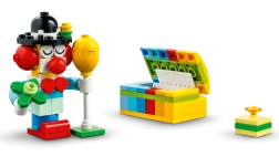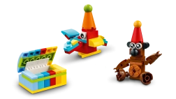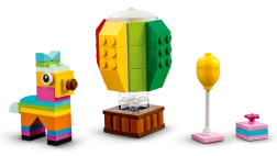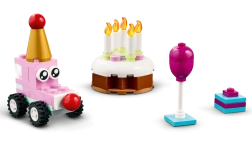 Teilen Sie den kreativen Spaß mit dieser bunten Sammlung von LEGO-Steinen. Die Elemente sind in sechs Beutel unterteilt, jeder mit LEGO-Steinen und leicht verständlichen Bauanleitungen für zwei einfach zu bauende Modelle. Diese Modelle umfassen einen Bären, Clown, Einhorn, Piñata, Regenbogen, Kuchen, Popcorn, Ballons und kleine Geschenke. Es ist perfekt für Gruppenaktivitäten bei jeder Feier, und wenn die Party vorbei ist, hört die kreative Baufreude nicht auf! Eine digitale Version der Bauanleitungen ist auch in der LEGO Builder App verfügbar.