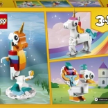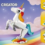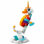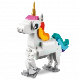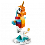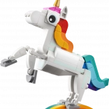 Mit diesem zauberhaften Set bauen Kinder ein anmutiges Einhorn mit goldenem Horn, Regenbogenschweif und beweglichen Beinen und Hufen. Das Modell kann auf einem Regenbogensockel ausgestellt und in die klassische Pose auf zwei Hinterbeinen gestellt oder auf allen vieren positioniert werden.