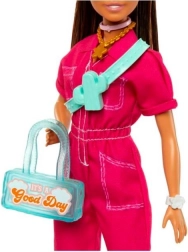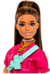Entdecken Sie modernen Stil und endlosen Spaß mit der Barbie Brünette im rosa Overall. Glattes braunes Haar im hohen Pferdeschwanz, weiße Schuhe und markante Accessoires verleihen jedem Spiel das gewisse Etwas. Ideal für Kinder, die Mode, das Zusammenstellen von Outfits und das Spielen rund um städtische Aktivitäten lieben.