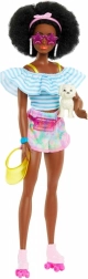 Zum Set gehören attraktive Accessoires – ein Haarreif mit Schleife, eine gelbe Schirmmütze, eine Uhr, eine Sonnenbrille und eine stylische Handtasche. Der treue Begleiter, das niedliche Hündchen, begleitet die Puppe auf jedem Abenteuer – vom Eis an der Promenade bis zum Nachmittagsrollen im Park.