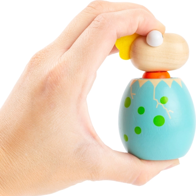 Das fröhliche Tier, das aus dem bunten Ei hervorschaut, lädt zu fantasievollem Spiel ein und unterstützt die natürliche Sinnesentwicklung. Die kompakten Maße liegen perfekt in kleinen Händchen und erleichtern das Greifen sowie die ersten Manipulationsversuche.