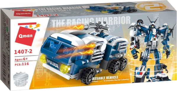 Entdecken Sie actiongeladenen Spaß mit dem Qman Raging Warrior – einem Kampf­fahrzeug mit 116 Teilen, das sich mit weiteren Sets kombinieren lässt. Bauen Sie ein detailreiches Modell polizeilicher Technik und erschaffen Sie durch das Kombinieren der Modelle der Serie einen großen robotischen Hüter des Gesetzes. Die Bausteine aus robustem und unbedenklichem ABS-Kunststoff sind vollständig kompatibel mit LEGO, Sluban, Cobi und weiteren Marken.