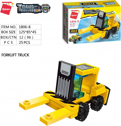 Dieses hochgradig variable Qman Bauset besteht aus bunten Kunststoffsteinen, die mit den bekanntesten Bausets kombiniert werden können. Die Verkaufspackung enthält 25 Teile, die zusammengesetzt einen Teil eines großen Schwertransportmodells bilden. Dank der Kompatibilität mit anderen bekannten Bausätzen wie LEGO, Sluban und Cobi können Sie Ihre kreativen Möglichkeiten noch erweitern.