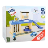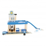 Schenken Sie Kindern eine Welt voller Actiongeschichten mit dieser small foot Polizeistation aus 100 % FSC®-Holz. Die zweistöckige Station mit Turm und Landeplatz, Zelle mit ausziehbarem Gitter und Auffahrtsrampe kommt mit umfangreichem Zubehör: Polizeiauto, Hubschrauber und zwei Figuren. Die robuste Kombination aus Holz und hochwertigem Kunststoff garantiert Widerstandsfähigkeit und Langlebigkeit, außerdem ist das Set kompatibel mit Eisenbahnsystemen anderer Hersteller.