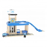 Im Set enthalten sind ein Polizeiauto, ein Hubschrauber, eine Polizistenfigur sowie eine Verbrecherfigur und die Stationsausstattung – alles bereit für spannende Verfolgungsjagden.
