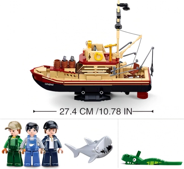 Der Bausatz des Fischerbootes Catherine bietet Freude am Modellbau und ist ideal für Kinder und Erwachsene, die Herausforderungen lieben. Das zusammengesetzte Boot misst über 27 cm und wird durch einen realistischen Hai ergänzt. Der Bausatz enthält drei innovative Figuren mit drehbaren und schwenkbaren Körperteilen, was beim Spielen für mehr Flexibilität sorgt.