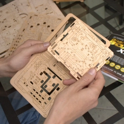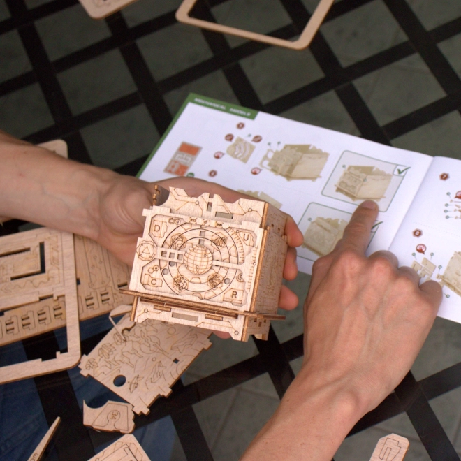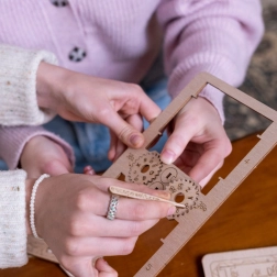 88 nummerierte Teile aus Birken-Sperrholz greifen passgenau ineinander, sodass Sie das Modell auch ohne Erfahrung leicht zusammenbauen. Die bebilderte Anleitung und ein QR-Code mit Hinweisen führen Sie zuverlässig durch den gesamten Prozess bis zur ersten Entriegelung.