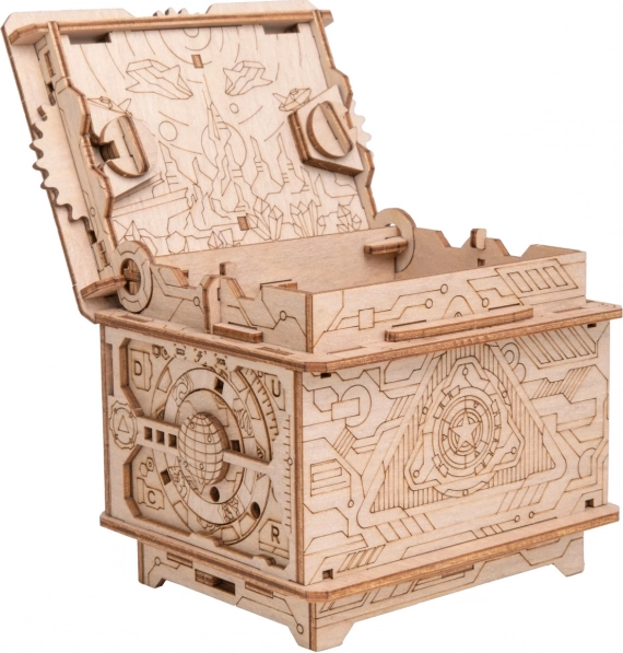 Tauchen Sie ein in die Welt des Escape-Rooms für Zuhause mit dem Modell ESCAPEWELT ORBITAL BOX. Dank präziser Laserschnitte und der übersichtlichen, bebilderten Anleitung bauen Sie die Box zuverlässig ohne Kleber und Werkzeug zusammen. Nach dem Aufbau erwartet Sie eine Reihe cleverer Mechanismen, Symbole und Kombinationen, die Sie entschlüsseln müssen, um das versteckte Fach zu öffnen.