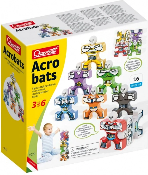 Die farbigen Figuren rasten leicht ineinander ein und ermöglichen stabile Pyramiden sowie originelle Konstruktionen – von einfachen Türmen bis zu gewagten akrobatischen Kreationen.