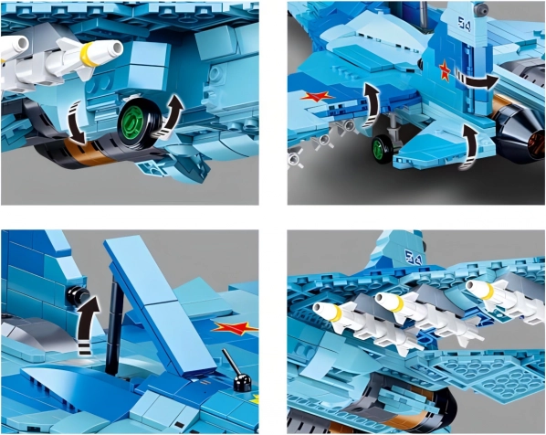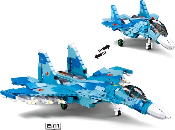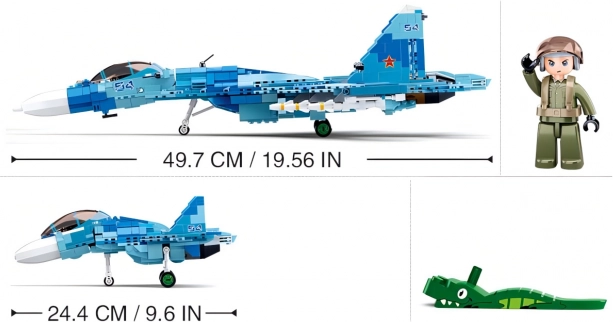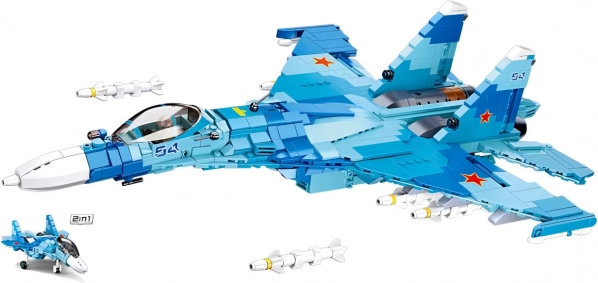Genieße den detailreichen Aufbau des realistischen Jagdflugzeugs Su-27. Das Set ermöglicht den Bau von zwei unterschiedlichen Varianten (Spannweiten 49,7 cm und 24,4 cm) im attraktiven blauen Design. Dank hochwertigem ABS-Kunststoff ist das Modell stabil, langlebig und ideal für langanhaltendes Spielen oder zum Ausstellen.