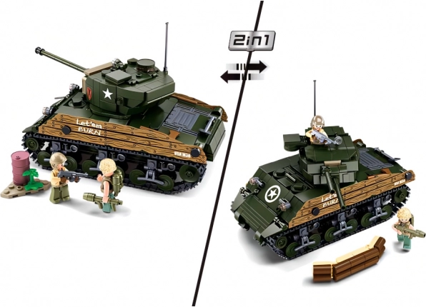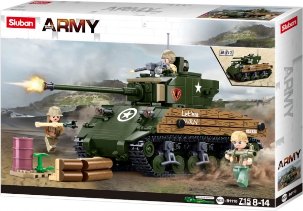 Tauchen Sie ein in die Welt historischer Schlachten mit dem realistischen Sluban Army WW2 M4A3 Sherman Bausteinset. Bauen Sie zwei unterschiedliche Versionen des bekannten amerikanischen mittleren Panzers und erweitern Sie Ihre Sammlung oder erstellen Sie eigene Szenarien. Das Set begeistert Technikfans und Kinder ab 8 Jahren.