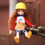 Emily kommt einsatzbereit: Sie trägt Arbeitsschuhe, ein langärmliges Shirt, Jeansshorts und einen Schutzhelm. Am Gürtel hat sie Hammer, Schraubendreher, Schraubenschlüssel, Schere und Taschenlampe – so meistert sie jedes „Projekt“, vom Puppenhaus-Aufbau bis zu kleinen Reparaturen. Das ideale Geschenk für Kinder ab 3 Jahren, die Basteln und Rollenspiele lieben.