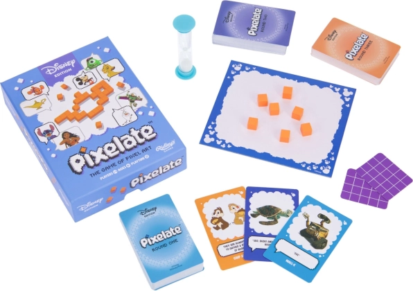 Disney Pixelate ist ein flottes und einfallsreiches Brettspiel, in dem ihr aus farbigen Holz-Pixeln Motive erschafft, die von der Welt von DISNEY und PIXAR inspiriert sind. Jede Runde läuft auf Zeit, die Anzahl der verfügbaren Pixel nimmt ab und die Spannung steigt – schafft ihr es, mit nur wenigen Steinchen ikonische Gegenstände und Figuren so darzustellen, dass die anderen sie erkennen?