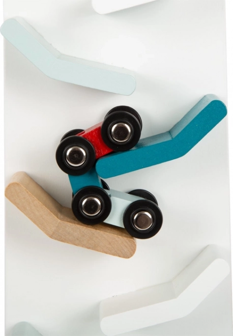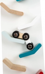 Die Holz Kaskadenbahn ist das ideale Spielzeug zur Förderung der kindlichen Kreativität und Motorik. Sobald Sie die farbenfrohen Autos von der Spitze aus loslassen, beginnen sie klappernd die Bahn hinunterzurollen, was für viel Spaß und Aufregung sorgt. Die moderne Farbkombination mit Weiß und natürlichem Holz macht dieses Set auch zu einer ästhetisch ansprechenden Dekoration für jedes Kinderzimmer.