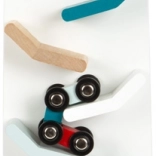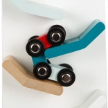 Die Kombination aus modernen Farben mit Weiß und natürlichem Holz macht dieses Spielzeug auch zu einem großartigen dekorativen Element.