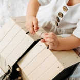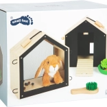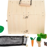 Im Set enthalten sind ein Plüschkaninchen und praktische Accessoires: Handfeger, Napf, Holzmöhre, ein Stück Salat sowie Filz-„Köttel“ für besonders authentische Pflegeszenen. Das Set ist eine ideale Alternative für Kinder, die noch kein echtes Haustier haben, und hilft, soziale und emotionale Fähigkeiten zu entwickeln.