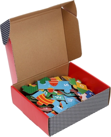 Große, robuste Teile liegen gut in kleinen Händen. Beim Puzzeln trainieren Kinder die Hand-Auge-Koordination, logisches Denken sowie das Erkennen von Buchstaben und Wörtern.