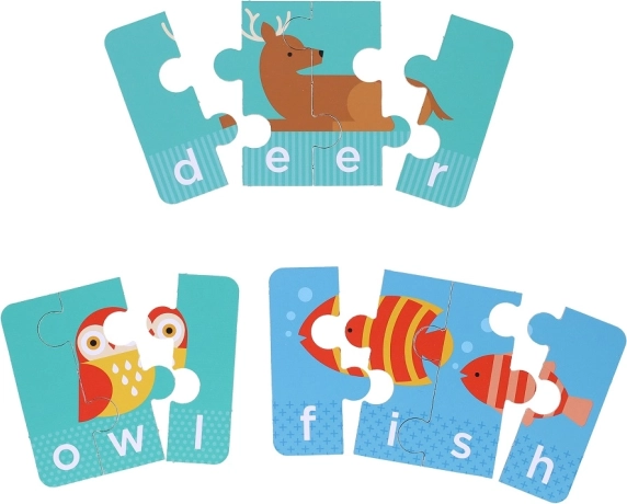 Dieses Lernset verbindet liebevolle Tierillustrationen mit einfachen englischen Wörtern aus 3–4 Buchstaben. Kinder legen gleichzeitig das Bild und das Wort und erkennen dank selbstkontrollierender Teile sofort, ob sie richtig puzzeln. Das stärkt das Selbstvertrauen, erweitert spielerisch den Wortschatz und fördert das Buchstabieren.