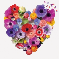 Die elegante Blumencollage in Herzform macht jedes Puzzeln zu einem visuellen Erlebnis. Hochwertiger Druck mit unbedenklichen Farben, matte Oberfläche und eine glatte Rückseite sorgen für angenehme Handhabung und perfekt erkennbare Details.