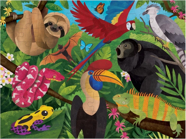 Das Puzzle bietet zwei unterschiedliche Szenen aus dem Leben im Regenwald – für doppelten Spaß und doppelten Lerneffekt.