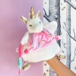 Die Doudou Plüsch-Handpuppe Einhorn ist 2 in 1: Sie dient als beruhigendes Spielzeug für Babys und zugleich als Handpuppe zum Erzählen magischer Geschichten. Ein praktisches Spielzeug zu Hause und draußen, das mit seinen sanften Farben und hochwertigen Materialien sowohl kleine als auch größere Kinder anzieht.