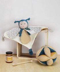 Der textile Aktivball Biene ist ein perfektes Spielzeug für kleine Kinder. Seine weiche Textur fasziniert Kinder und fördert die taktile Stimulation und das einfache Greifen. Dieser Ball enthält eine integrierte Rassel, die die Aufmerksamkeit der Kinder fesselt und die Entwicklung des Gehörs unterstützt.