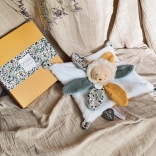 Dieses entzückende Löwen-Kuscheltuch wurde entwickelt, um Ihr Baby von den ersten Tagen an zu begleiten. Weicher Plüsch mit unterschiedlichen Texturen sorgt für beruhigenden Kontakt, während der frische Baumwollprint die visuelle Wahrnehmung anregt und natürliche Neugier fördert. Der kleine Löwe ist leicht, gut greifbar und ideal zum täglichen Kuscheln und Schlafen.