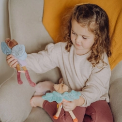 Lernen Sie Puppe Tara kennen – eine zarte Schmetterlingsfee in einem violetten Kleid mit blauen Flügeln und stilvollen Accessoires. Dank der weichen Materialien ist sie ideal zum Kuscheln und für die ersten Spielmomente der Kleinsten. Bestickte Gesichtszüge sorgen für Sicherheit ohne Kleinteile.