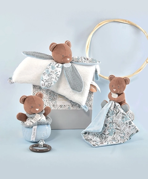 Bereiten Sie sich auf Freude und Komfort mit unserem Geschenkset vor, das einen Plüschbären und eine Decke enthält. Dieses Set wurde entwickelt, um höchsten Komfort für Neugeborene zu bieten, dank seiner ultraweichen und beruhigenden Oberfläche mit einem frischen Baumwollmuster, entwickelt von unseren Stylisten. Es ist das ideale Geschenk zu Weihnachten oder zur Feier eines neuen Familienmitglieds.