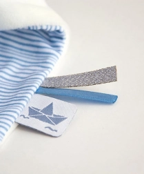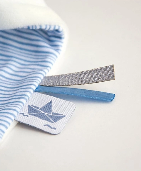 Entdecken Sie den Zauber des Häschens Matrose, das in einer atemberaubenden Geschenkbox geliefert wird, die Modernität und Luxus ausstrahlt. Dieses bezaubernde Häschen ist mit einem blau-weiß gestreiften Hemd bekleidet und mit einer kleinen Krone geschmückt. Es hält eine Decke in der Hand, die als Schmusetuch dient und für die kleinen Hände Ihres Kindes leicht zu greifen ist.