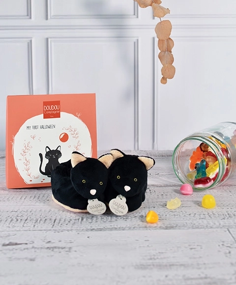 Suchen Sie ein originelles und praktisches Geschenk für ein Neugeborenes? Die plüschigen DOUDOU-Schühchen mit schwarzem Katzenmotiv sind sanft zur empfindlichen Babyhaut und halten zuverlässig warm. Dank des verspielten Designs verleihen sie jedem Baby-Outfit das gewisse Etwas – ob für die Halloween-Party oder beim täglichen Spaziergang.